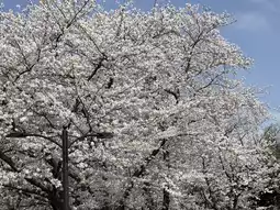Walking along the trails surrounding the stadium, the cherry blossoms on either side form a continuous corridor. Delicate, single-petaled blossoms bend their branches, and the wind blows through them, sending petals cascading down like snowflakes, blanketing the path and lawns, creating a romantic sound with every step. 🌸 The sun shines through the blossoms, casting golden specks of light, and the air is filled with a delicate fragrance. A stroll through the trees feels like stepping into a fairytale.
