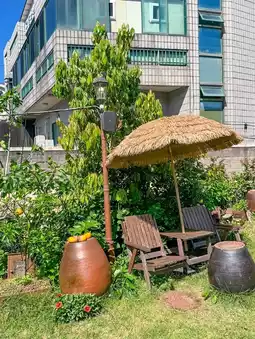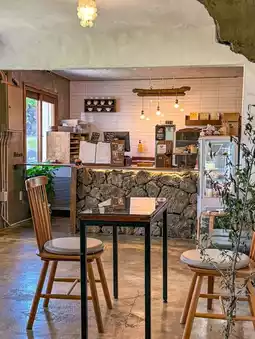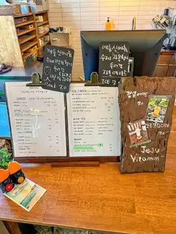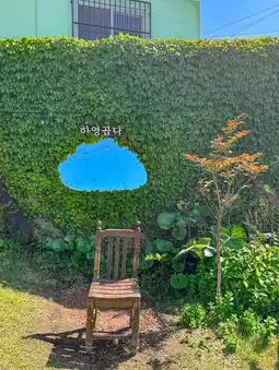 Jeju's Yongso Dam Cafe features a spacious outdoor garden and multiple tables inside, making it a great spot to visit with family or friends during your trip. Open daily from 10 AM to 10 PM, the cafe operates year-round, offering convenience for visitors. If you visit in May, you'll be greeted by vibrant red roses and daisies, and you can enjoy your tea or coffee at outdoor tables while basking in the warm sunlight. The outdoor area also includes a photo zone, with a mirror designed to resemble Jeju Island and the phrase 'Hayoung Gobda' (meaning 'very beautiful' in Jeju dialect) adding a local touch to the atmosphere.