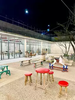 As a side note, the tables, chairs, props, and sculptures here were made by the owner himself, and there are many pieces of furniture that you can't find anywhere else. There is also an exhibition hall in the basement where you can buy furniture, so it was a place I'd like to recommend to those who are interested in interior props or furniture. During the day, you can see the ocean view from the window, and there are various art pieces and woodworks everywhere, so it felt like visiting an art gallery.