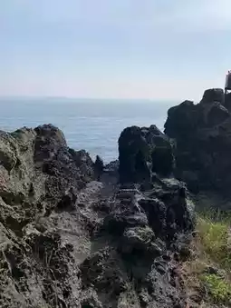 #springitinerary Jusangjeolli Cliff is wild, like, how did nature manage to make lava look this artsy? It’s this insane wall of hexagon-shaped rock columns stacked perfectly along the coast, and when the waves crash into them? Total drama. It looks like something from a fantasy movie, but it’s just chillin’ there in Jeju like it’s no big deal.