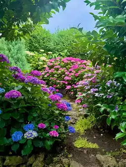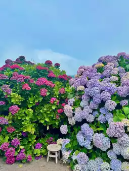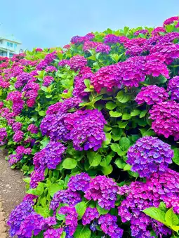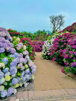 Go through the cafe door and you will see the 6,500-foot hydrangea garden. The garden is full of hydrangeas, forming hydrangea walls, hydrangea tunnels, and hydrangea gardens.