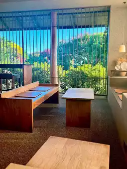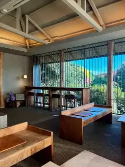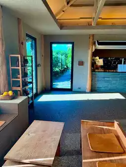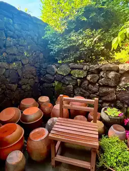 After walking in the courtyard and hydrangea field of Soomdo, follow the sign and walk down the stairs to see a stone wall building with a very Jeju feel. After pushing the door in, you will see neat and tidy wooden decorations, and various indoor and outdoor seats are comfortable and full of space.