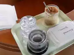 Filter coffee (brewed coffee), cinnamon latte, almond biscuits