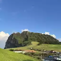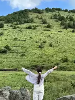 Jeju Island's 'Yongnuni Oreum' where you can take in the lush green scenery at a glance