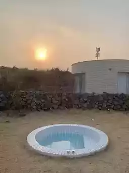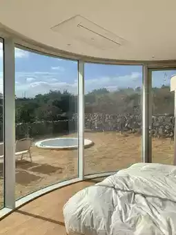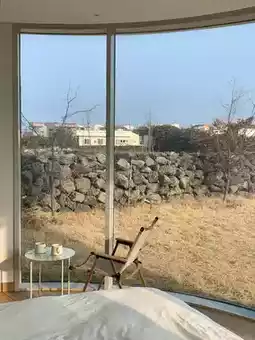 A private villa with a free jacuzzi, full of Jeju sensibility, all for under 100,000 won...🤎🤎 The stone wall view from the large windows was truly healing, and it was a great way to start my Jeju trip. 🥹
