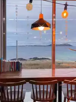 A quiet cafe and prop shop with a great view of the Jeju sea: Whale's Sea