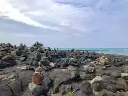 #Jeju Island Travel #Jeju Travel #Winter Sea #Winter Travel #Domestic Travel #Hyeopjae Beach #Hyeopjae Beach #White Sand Beach #Stone Floor #Stone Tower #Lava #Nature #Sea #Waves #Sky #Wind #Background #Picturesque Landscape #Must-See Course