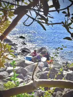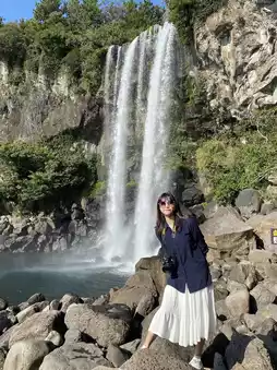 This fairytale-like place is 'Jeongbang Falls' located in Jeju Island. The waterfall connected to the sea and the glitter on the sea surface were so pretty! If you go to Jeongbang Falls, be sure to look for a rainbow :)