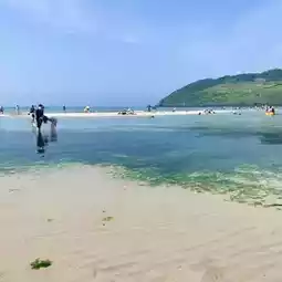 Today, I brought you another famous beach in Jeju, Hamdeok Beach! Hamdeok Beach has a different charm from Hyeopjae Beach~ I thought Hamdeok Beach was wider and more enjoyable! The open sea stood out and was pretty!!