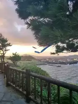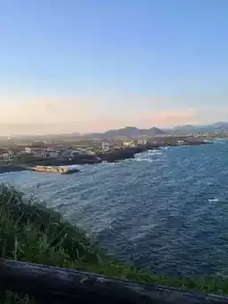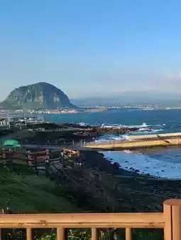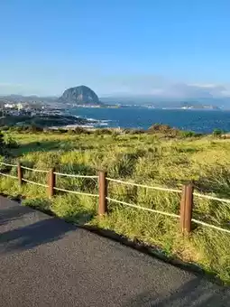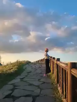 Songaksan is a mountain located in the southwest of Jeju, and it is my favorite place! It is located in the west, and the sea is right next to the mountain, so it was really nice to see the sunset. It was really pretty and had a different feeling every time I went, and it felt healing. I didn't climb the mountain this time, but just walked around the perimeter trail. The combination of the purple sky and cotton candy-like clouds was so pretty. It is a place I always want to visit whenever I travel to Jeju Island. I recommend going 30 to 1 hour before sunset! If you are traveling to Jeju Island, definitely!! Go there.