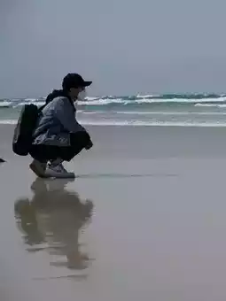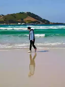 When shallow waves hit the sandy beach once, the shallow seawater covering the sandy beach begins to reflect Biyangdo, the waves, and the people walking around here like a mirror.