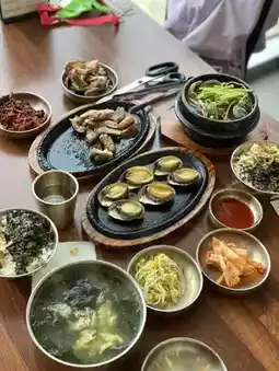 🍽 Soseom Jeonbok is a restaurant specializing in abalone dishes located in Udo, Jeju Island. If you order a set for 2, you can choose a main menu such as abalone rice, abalone butter grilled, Jeju Island black pork, and crab stew, as well as seafood stew, sea urchin and seaweed soup. For 40,000 won for 2 people, you can taste fresh abalone dishes and various side dishes, so it is very cost-effective. I would like to recommend the abalone butter grilled, especially the seafood stew soup, which is very refreshing and fragrant! In addition, the ocean view will make your meal enjoyable for both your eyes and mouth.