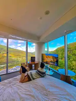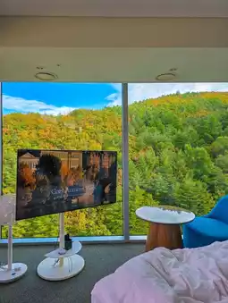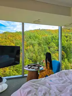Since it’s a corner room with windows on two sides, every glance offered a view of mountains painted in green, yellow, and orange hues! It was like having a 'window frame' masterpiece🍂