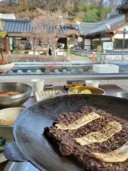 I was wondering what to eat in Jeonju Hanok Village and went to eat Seokseok Bulgogi. The flat bulgogi + bibim naengmyeon with the view of the Hanok Village was so delicious!