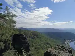 For those seeking high-altitude views without the crowds, the viewpoint from the Decínský Sněžník (Hoher Schneeberg) lookout tower is a fantastic alternative. As the highest mountain in the region, the easy 40-minute walk up to the tower is manageable for families. From the top, the panoramic view stretches across the entire national park and well into the German side, providing a spectacular perspective of the sprawling forest, the sandstone plateaus, and the meandering Elbe River valley.
