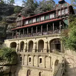 For the most romantic and photographic view, a trip to Mariina Skála (Mary's Rock) near the village of Jetřichovice is highly worthwhile. This is one of the highest and most easily accessible lookout points, offering a stunning vista over the vast valleys and forested landscape. Climbing the wooden stairs to the small viewing platform is an exciting effort, rewarded by a perfect panoramic spot, often cited as the best place in the park to capture a colorful sunset. It truly feels like standing atop a world of natural splendor.