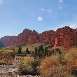Jeti Oguz, known for its striking "Seven Bulls" red rock formations, is a natural masterpiece in Kyrgyzstan. The vibrant red cliffs, resembling charging bulls, are steeped in legend and radiate a sense of grandeur. Surrounded by lush valleys and snowy peaks, the area is a haven for trekkers and photographers. Exploring the serene surroundings, with yurts dotting the landscape, offers a glimpse into nomadic traditions. The journey to Jeti Oguz is as captivating as the destination itself—truly a must-see for nature enthusiasts.
