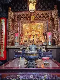 Shengnan Temple in Ji'an, Hualien, is a significant local religious center, renowned for its deity, the Black-Faced Mazu. The temple's majestic red tiles and carved, painted beams stand out in the sunlight, and the square in front of it is often bustling with worshippers. The Black-Faced Mazu symbolizes the protection of fishermen and ordinary people, attracting many to pray for peace and success in their careers.