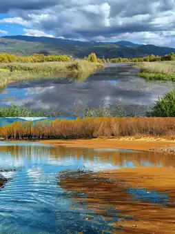There are wetlands on the east side of the lake and birch forests on the west side.