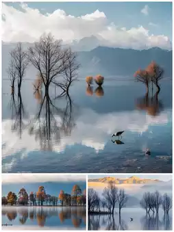 Jian Lake is most enchanting in the morning, with mist lingering over the lake, creating a fairyland-like scene. After sunrise, the sunlight sparkles on the lake, creating a breathtaking view. The wetlands by the lake are a paradise for photographers, where you can capture the wonderful moments of migratory birds playing.