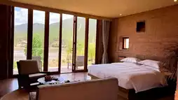 The hotel is located on the top of Baoshi Mountain National Forest Park in Shaxi, with a perfect location along the lake, giving it a unique landscape advantage. The 360-degree natural scenery surrounds the hotel, and in the distance, the original Bai villages are scattered and look across the lake from the hotel. In the morning, a thin mist rises from the lake, and the smoke from the village rises slowly, like a dream; in the evening, the afterglow of the sunset spills over the lake, sparkling, dyeing the whole world in warm colors.