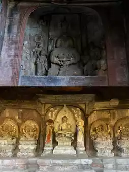 Shibaoshan Scenic Area consists of Haiju Temple, Baoxiang Temple, and the Shizhongshan Grottoes. The Shizhongshan Grottoes, dating back to the Tang and Song Dynasties, are known as the "Dunhuang of the Southern Silk Road" and are the main attraction.