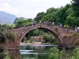 Yujin Bridge was first built during the Kangxi era of the Qing Dynasty. Over the centuries, it has endured collapses and the ravages of war, being destroyed and rebuilt multiple times. At the apex of the arch, there is a stone carving of a turtle head gazing over the upper reaches of the Heihui River, while the other side features a turtle tail carving connecting to the lower reaches of the Heizhan River. At the ends of the bridge's railings, you'll find four stone sculptures of Chinese giant salamanders.