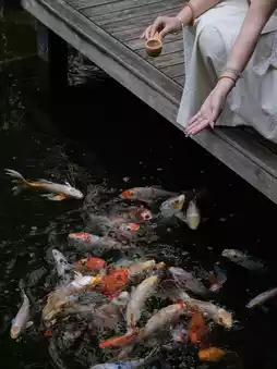 ❹At night, feed the koi by the pond as the wind rustles through locust leaves, transporting you to a hidden utopia.