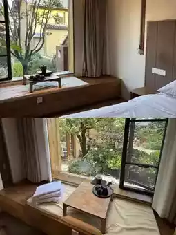 💐 The room design is very tasteful, blending local Bai ethnic elements with a modern minimalist style 🌿 Wooden furniture feels especially warm, the electric curtains open and close with just one button, and the bedding is incredibly comfortable, ensuring a great night's sleep without a doubt.