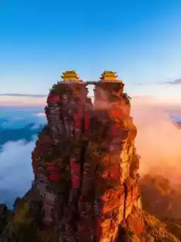 Fanjing Mountain’s Red Cloud Golden Summit is the prototype of the "Heavenly Palace" in fairy tales, with two golden peaks connected by a sky bridge, floating in the mist like drifting in the sky. The 4.7 rating hides a geological miracle of hundreds of millions of years—the mushroom rock stands firm through wind and rain, and from the old golden summit, the sea of clouds surges like a fairyland.