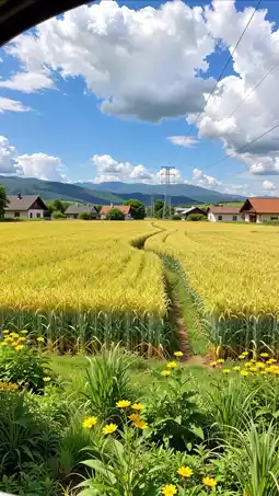 Golden wheat waves dance in the wind