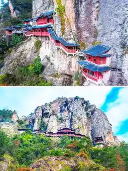 It has the same purpose as the Hanging Temple of Hengshan Mountain in Shanxi Province.