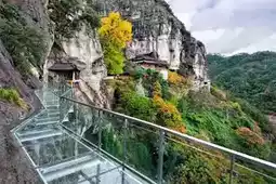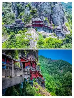Next, I challenged the steep cliff plank road. Walking along the plank road, I felt the magic of nature. Beside me is the green cliff, under my feet is the leisurely valley, and occasionally I can see a few magpies flying happily on the plank road. At the end of the plank road, I encountered the Hanging Temple, a half-embedded in the mountain and half-hanging in the air, which can be called a miracle.