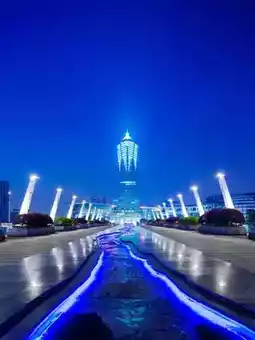 The heart of Hangzhou's urban buzz, West Lake Cultural Square is a hub of activity day and night. Just a short walk from the subway, the square is surrounded by museums, science centers, and shopping malls. The nighttime fountain shows and the glow of the surrounding buildings create a lively and beautiful atmosphere that captures the essence of Hangzhou's cultural scene.