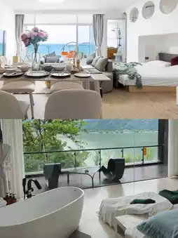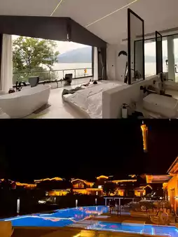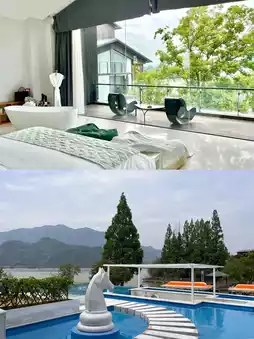 The 1,000-square-meter infinity pool is integrated with the Fuchun Mountains. You can enjoy the scenery while swimming, turn off the lights, lie on the bed and watch the sunset. This comfort and romance is amazing.