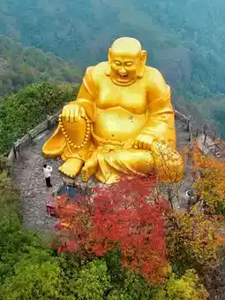 The golden double-sided Maitreya Buddha stands on the top of the mountain. It is particularly majestic and is said to be very spiritual.