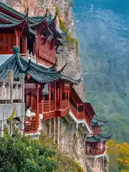 The Hanging Temple has a cliff on one side and a cliff on the other.