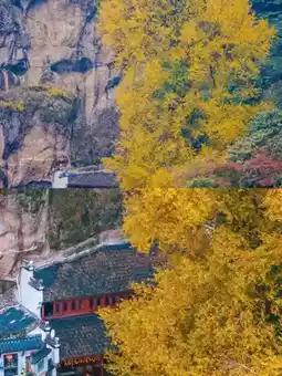 There is a hanging temple in Jiangnan. When you stand on the hanging temple of Daci Rock and look down, it is a bottomless abyss. The scene is thrilling and spectacular. The temple seems to be embedded in the mountain wall. I really admire the wisdom and courage of the ancients! Moreover, there is a ginkgo tree over 700 years old, which is showing its most beautiful posture in this season.