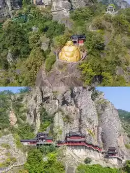 - Double-sided Buddha: The golden Buddha sits peacefully on the top of the mountain, which is very shocking. No matter from the east or the west, you can see its full and real smile.