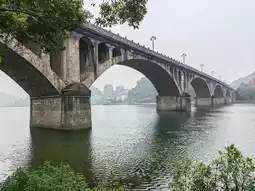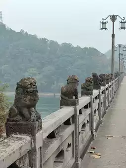 The Baisha Bridge is located over the Xin'an River in Jiande City, Zhejiang Province. It is a magnificent bluestone bridge built in 1960. The bridge is 362 meters long, 24 meters high, and 11 meters wide. The main bridge has six arches, each with a main span of 50 meters, forming a slight arc. The railings are carved with 256 large and small stone lions, each with a unique and lifelike expression.