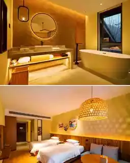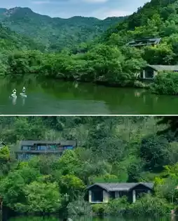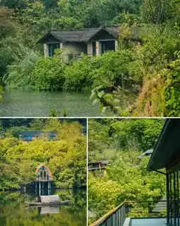 This place was once the inspiration for Yuan Dynasty painter Huang Gongwang's "Dwelling in the Fuchun Mountains." The hotel, with its "wild luxury" theme, perfectly blends 220 acres of natural forest with the landscape of the Fuchun River. Buildings are scattered along the lakeside and among the mountains. Cabins, boat houses, tree houses, and villas feature thatched roofs and natural wood structures, as if they grew naturally from the environment. Open your window to see green waters and mountains, wake up to birdsong, and enjoy stars within reach at night.