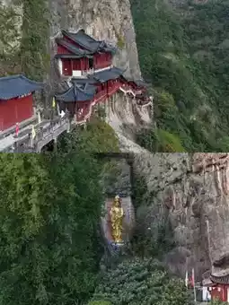 The Hanging Temple of Jiangnan is built on a cliff face,