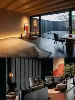 The guesthouse is hidden by the Xin'an River in Jiande, featuring Song Dynasty style, and is known as the real-life "Dwelling in the Fuchun Mountains." It has a total of 21 rooms, divided among three buildings: "Nalanda Fearless," "Priya True Love," and "Anika Wonderful."