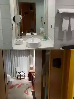 The room (superior king) is large and has a bathtub. I think the bed's firmness is acceptable, and they also provide bathrobes.