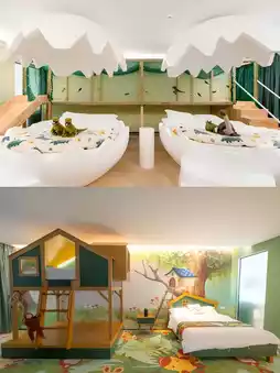 The hotel design is very innovative and unique, with more than 10 dreamy themed rooms, such as the Jurassic dinosaur egg room, pink bunny room, jungle adventure tree house room, Ultraman room, Totoro room, etc. The attractiveness is really high.
