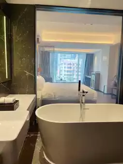 ✅ There is also a large bathtub in the room, you can take a bath and relax, and atomized glass can adjust the transparency, very romantic.