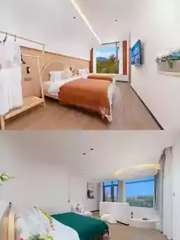 The villa style is clean and bright, with wabi-sabi style decoration, and every detail is full of details. There are 9 private hot spring bathing pools, and you gently scoop up a few ladles of warm spring water. After soaking in the hot spring, your whole body will be warm. In the evening, there will be a barbecue party in the garden. Spend relaxing time in hot springs