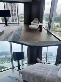 The 'Garden Mountain Lake Suite' I stayed in is very spacious. From the bedroom, one can enjoy the view of 'Jiangmen Sports Center', overlook star concerts, and also appreciate the lake view of 'Garden Mountain Lake'. It is said that there are music fountain performances on weekends here 🎶🎶🎶