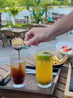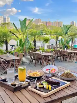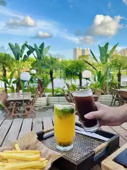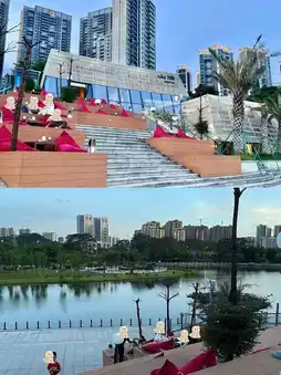 There are two areas, indoor and outdoor, with a large outdoor balcony with lake views and fountains⛲. We went in the evening, the cool breeze was blowing, and it was really comfortable to sit on the lazy sofa😌. There is also a musical fountain performance at night🏙, which is full of atmosphere🌟