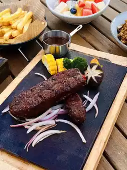 Original grain-fed steak🥩: The steak is tender and juicy, 70% cooked just right, overflowing with charred aroma, with black pepper sauce, taste better👌🏻.